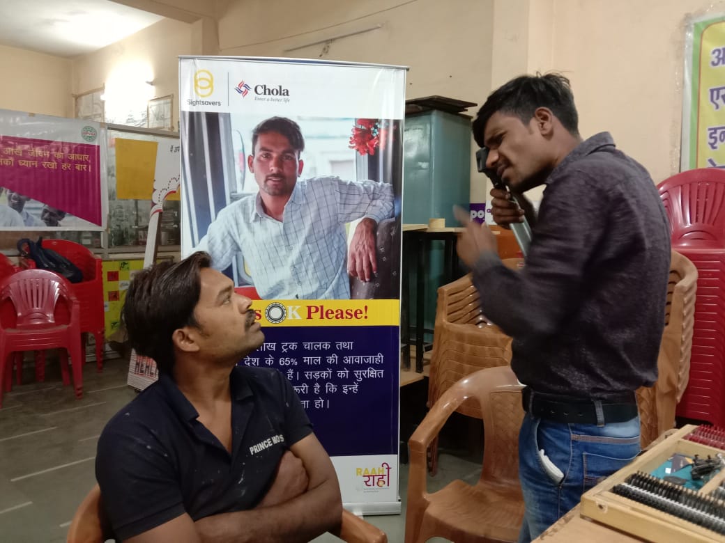 The second important and unique eye health project is being implemented by MPVHA since 2019 with the support of Sightsavers exclusively to cater the needs of Truckers/Helper in city Indore is popularly known as “RAHI”. The project has adopted centre based as well as outreach camp based approach. Services provided at ‘RAHI’ vision centre are vision screening, refraction, old spectacles examination testing of glaucoma, blood pressure, diabetes, body weight, referral for cataract and distribution of spectacles (Near & Distant Vision) etc.
